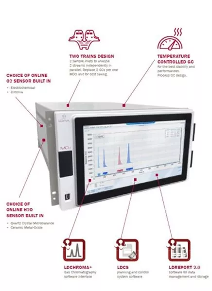 MultiDetek3 är den senaste utvecklade kompakta industriella gaskromatograf. Det är mer än en enkel gaskromatograf: det är en modulärt process GC-instrument som kombinerar funktionaliteten som två GCs och möjlighet att också övervaka fukt och syre online. Den har dubbla provinlopp och online moduler som möjliggör analys av fukt och syre samtidigt och spåra föroreningar. MultiDetek3 är temperaturkontrollerad för förbättrad stabilitet och prestanda.