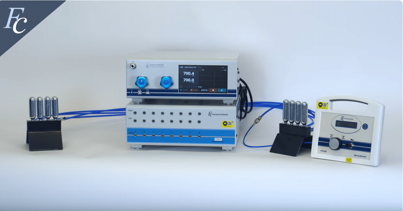 Multi-channel, dual-station leak tester using a Furness Controls FCO790 and FCS612 sequence box.